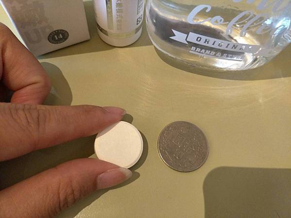 跟一般發泡錠差不多大概比10元硬幣小一點點